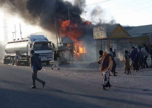 Massive fire broke out at a petrol station in Garowe. [Photo: Facebook]