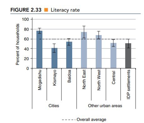 1.Puntland is just a few Digits Mogadishu behind The capital city in terms literacy it is clearly ahead of Somaliland and Central Somalia Keep in mind Mogadishu was the center in Somalia for education in the colonial era the civilian era and the kaccan government.