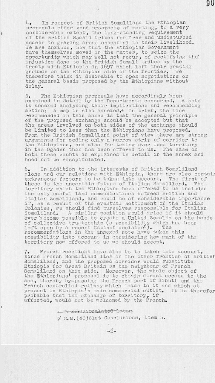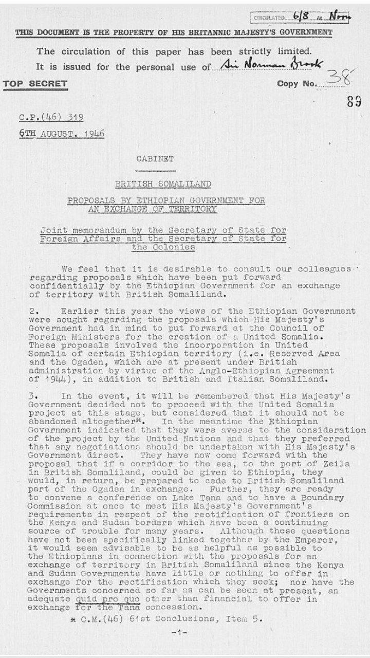 1946: Top Secret Communication between the British & Ethiopians regarding the proposal of exchanging the coast of Zeila for Half of Somali Galbeed