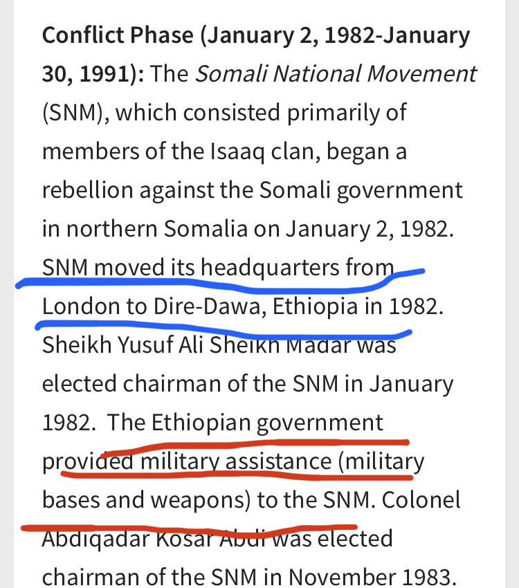Regardless SNM were active in the region since the early 80s and were being used to fight against there country. He is just accustomed to the “woe is me my brothers betrayed me” brainwashing. In fact if I am correct @AarHawd_7 im sure at some point you have argued on this site that it was moral working with Mengistu against Siad.