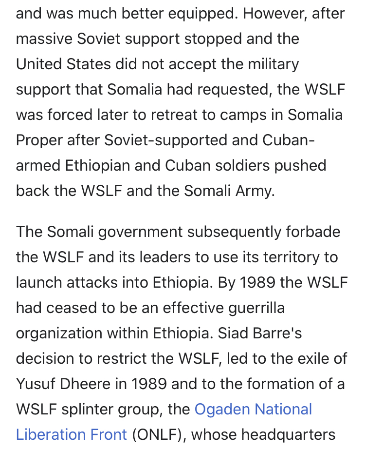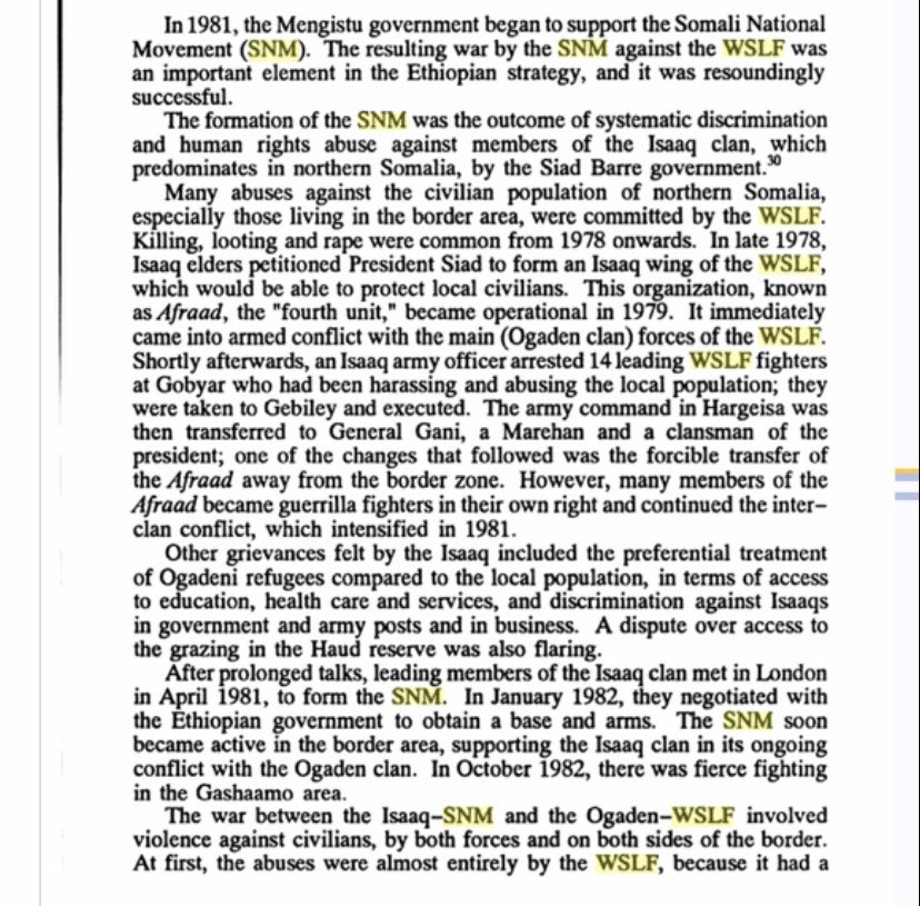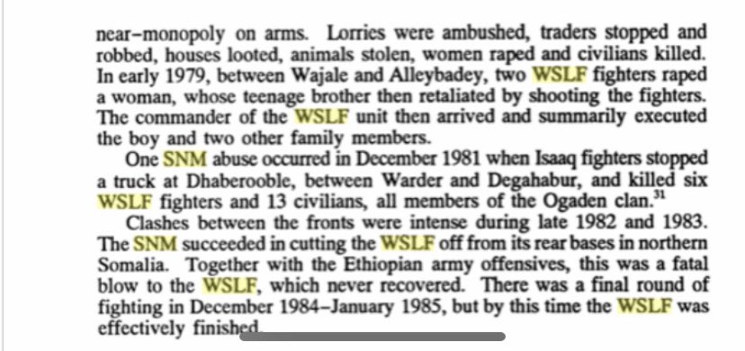 When it comes to the WSLF, yes SNM were armed by Ethiopia. But so where the Cagdheers under the WSLF banner by Afweyne and the Somali government. The SNM was created to counter WSLF militias harrassing poor Isaaq nomads by the WSLF armed by Afweyne. The Ethiopians and the SNM finished the WSLF by 1985 they were effectively finished and you lost to the Habar Yoonis and Ciidagale. Its well documented don’t try to turn history in your favor when its all documented.