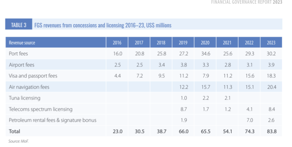 You're right, it is about 305 million. Petroleum and air navigation fees were the only clear sources of revenue collected nation-wide. I'm almost certain that all port fees are from Xamar Harbour and Aden Cadde Airport.