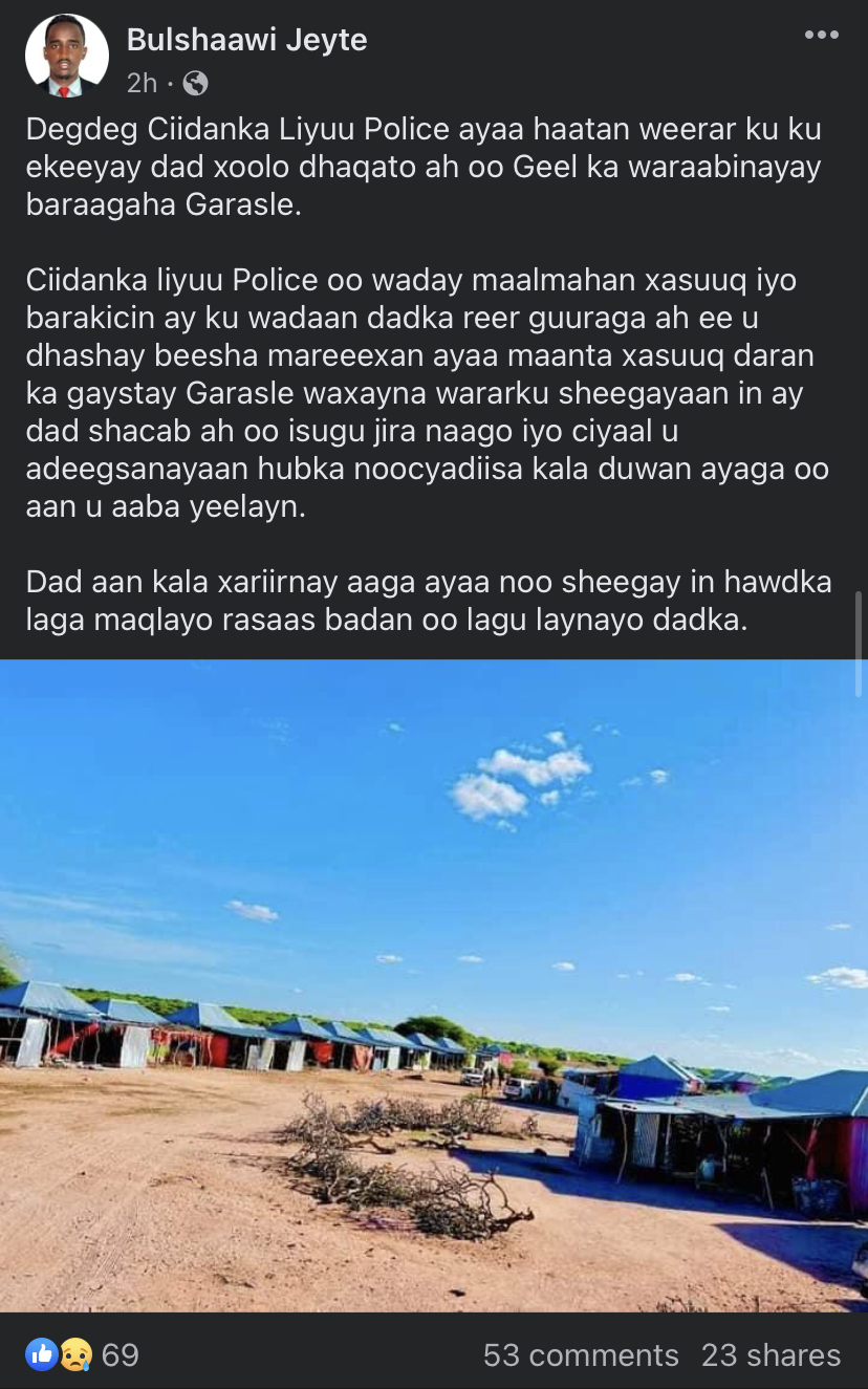 Ninkii soo joog laga waayo, soo jiifaa lagaa helaa. Shilaabo has been a cesspit for too long, time for a deep clean. First Mx refugees then the red eyed squatters in Lababaar