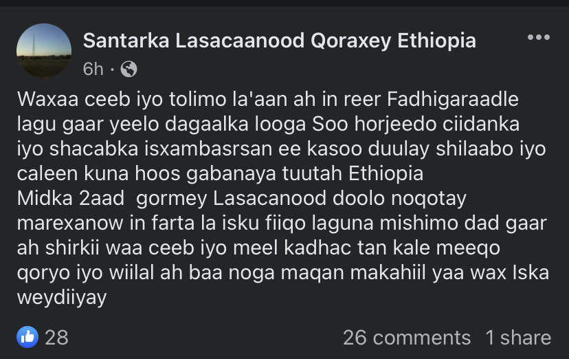 Shisheeye ku nool. Fulay foqol fulay. A sub sub sub clan has made you scream mama ethiopia please help me.