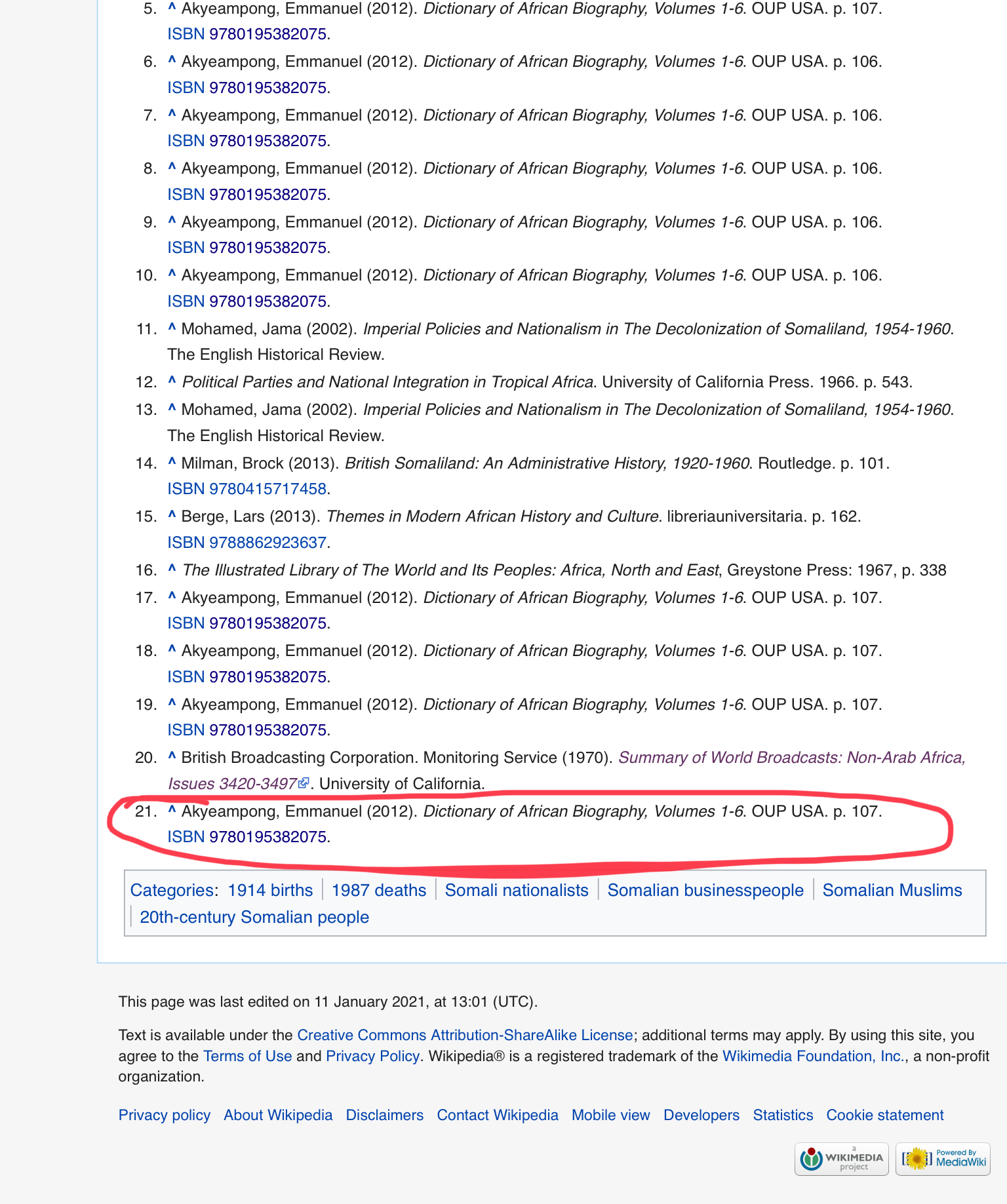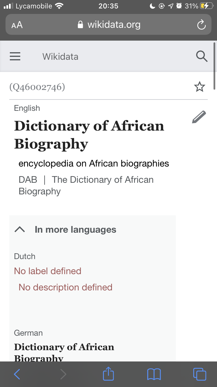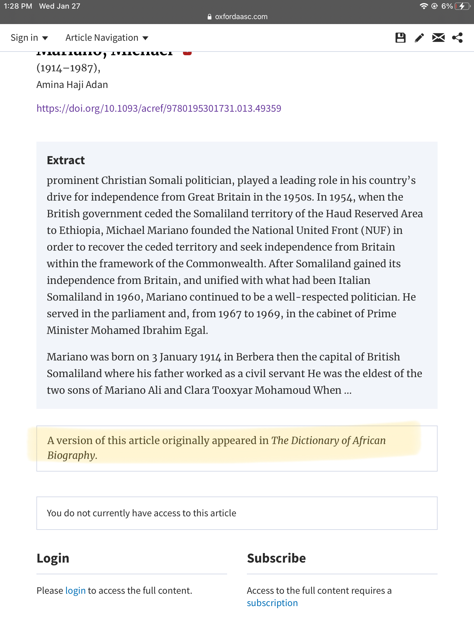 Since I do not have a subscription I went onto the free version. Otherwise known as The African dictionary. And guess what was on there? The fact that he died a Muslim. And guess what was also shocking. Yes, Wikipedia used that same cite.