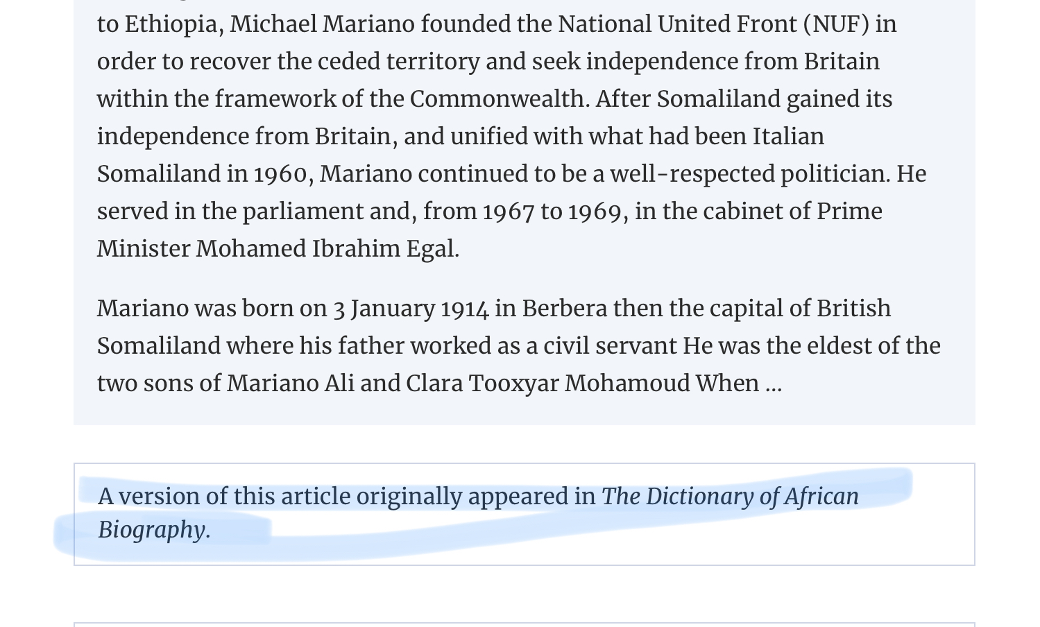 It’s not a Wikipedia link, both sites use the same source. The African Biography. The same biography in which said Mariano died a Muslim. Re-read what I said.