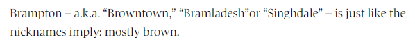 From what I can tell Brampton is the musty, undesirable, and Indian town- correct?I'm surprised you got that I thought only @Shmurda would understand