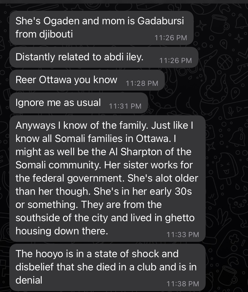 UPDATE: This was an accident hence the manslaughter charges. The cadaan girl did not stab her with broken glass. Both girls were fighting and when they fell on the floor, there was broken glasses that pierced a main artery in Hodan's neck. Subhanallah. When your time comes to die, anything can be the reason. Inaa lilahi wainaa ileyhi rajioun. I've heard of people who have survived a whole iron rod getting stucked into their skull. At least, her death was quick and painless maskinta.