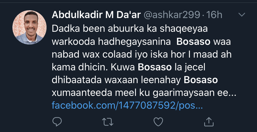 It will never be thru waxad fafeeneso wa been.... all I say to you is benta joojiWhat will you say when the news is official. It’s already officiall to me. But what will you say. You insulted me and my family already.