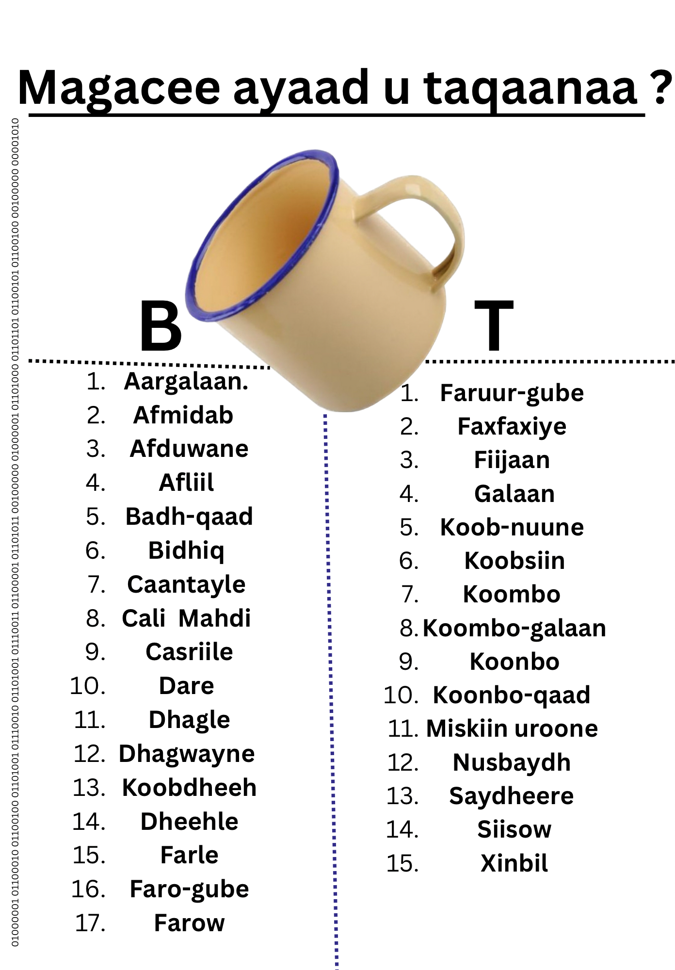 I have collected nine different names for eraser in Somali language, including these four names. Also, I have collected words that mean the same thing in English but there is a slight difference blackboard eraser and pencil eraser in Somali language. Of All these words I will be posting the authentic Somali ones only. This because the tool’s name and purpose can be easily understood by any Somali and afsoomaali learners. Therefore it will help them in long run.