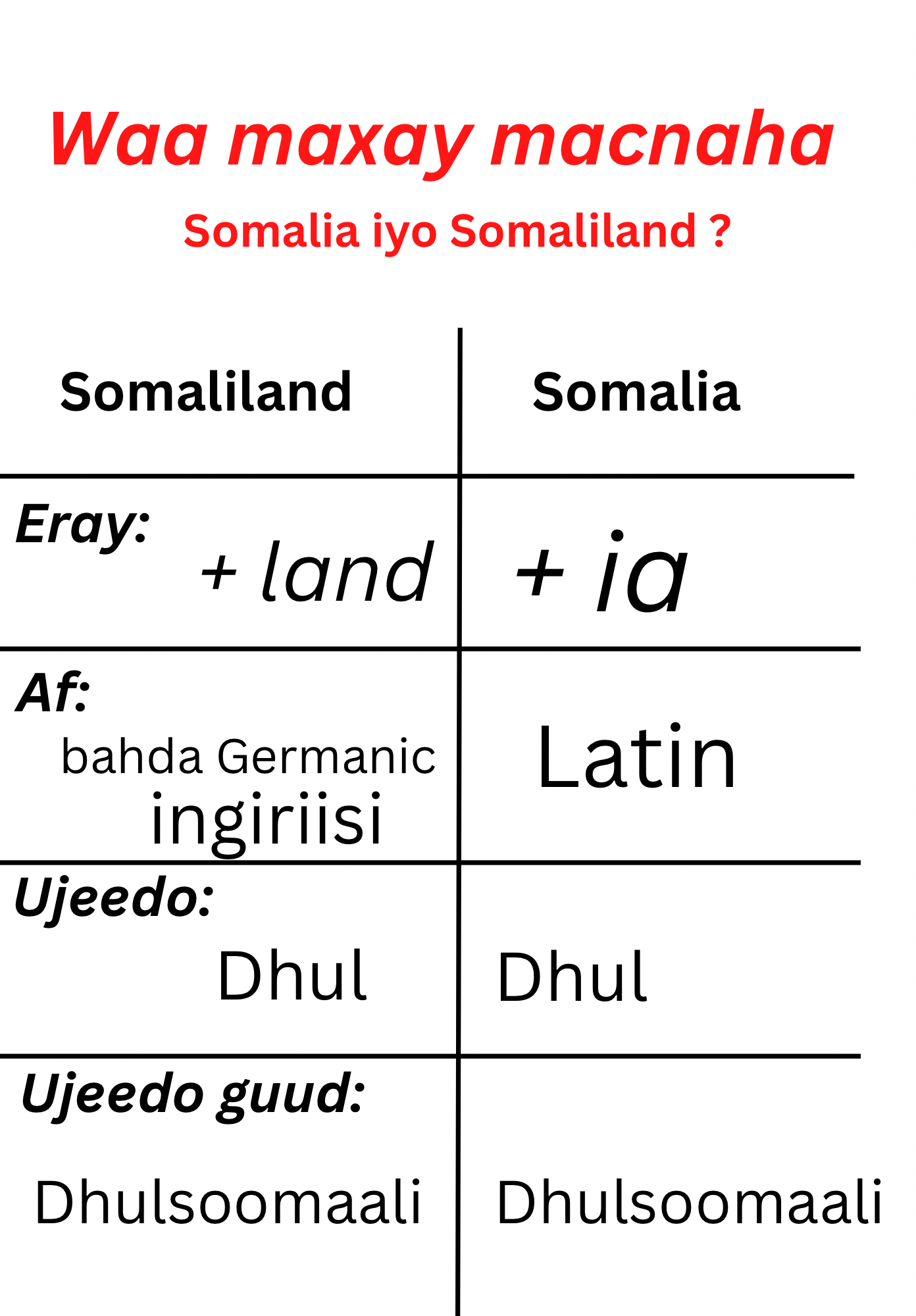 Labaduba eray somalia iyo somaliland waxay iskaga mid yihiin horkabaha β€œsoomaali” oo loola jeeda isku macne.