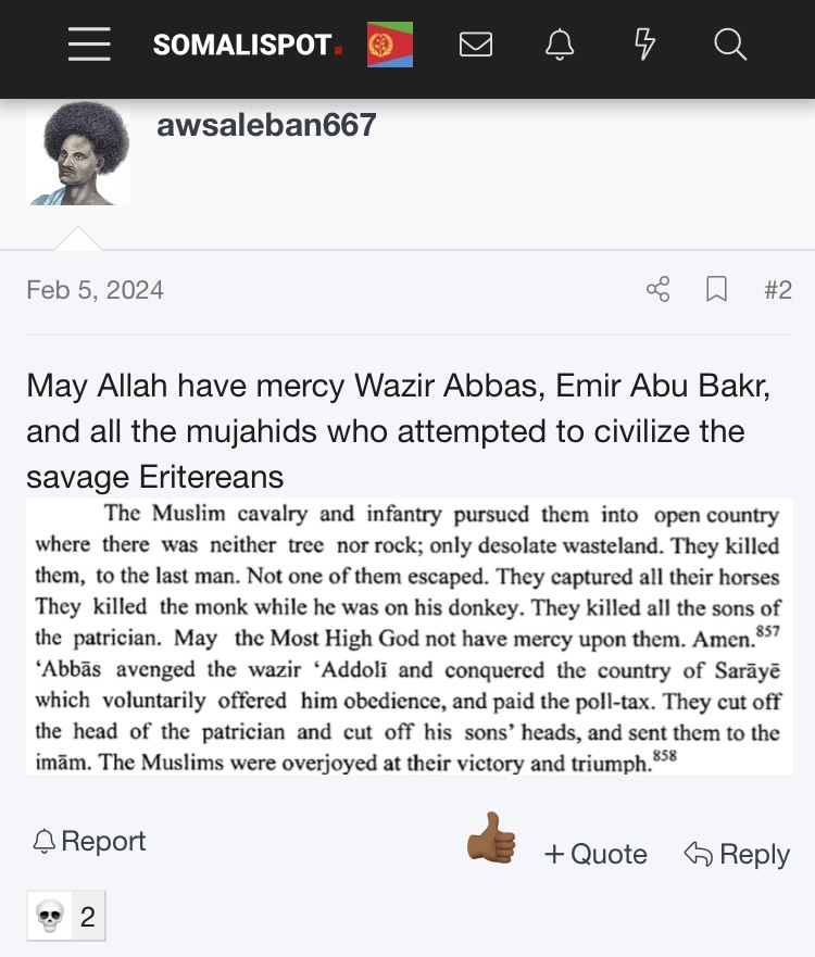 But of course you will ignore this, no ones telling you to leave somalispot youre complaining about something that happened 500 years ago while we are talking about afars. Afars dont even play much of a role in eritrea proper anyways.