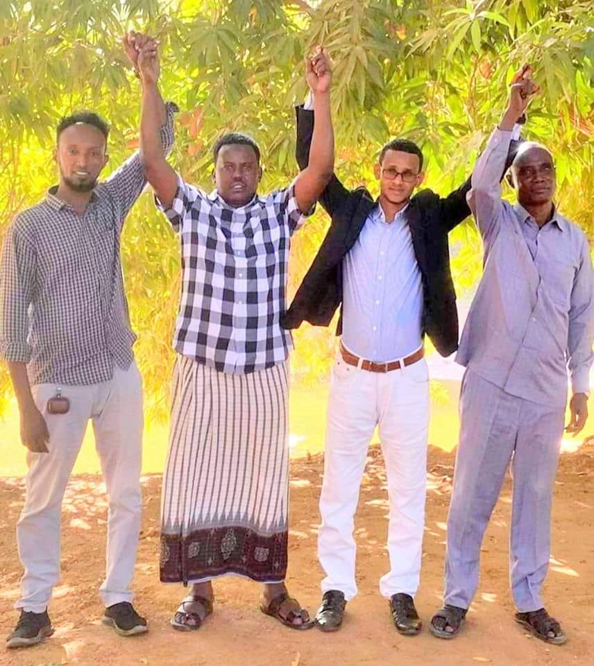 Two of Canjeex's former alies pictured in this photo have already deserted him and have been given positions in Gedo's new maamul as deputy ministers. One of the new deputy ministers (Nasteex Salaax) returned to JL to work for Madoobe again.