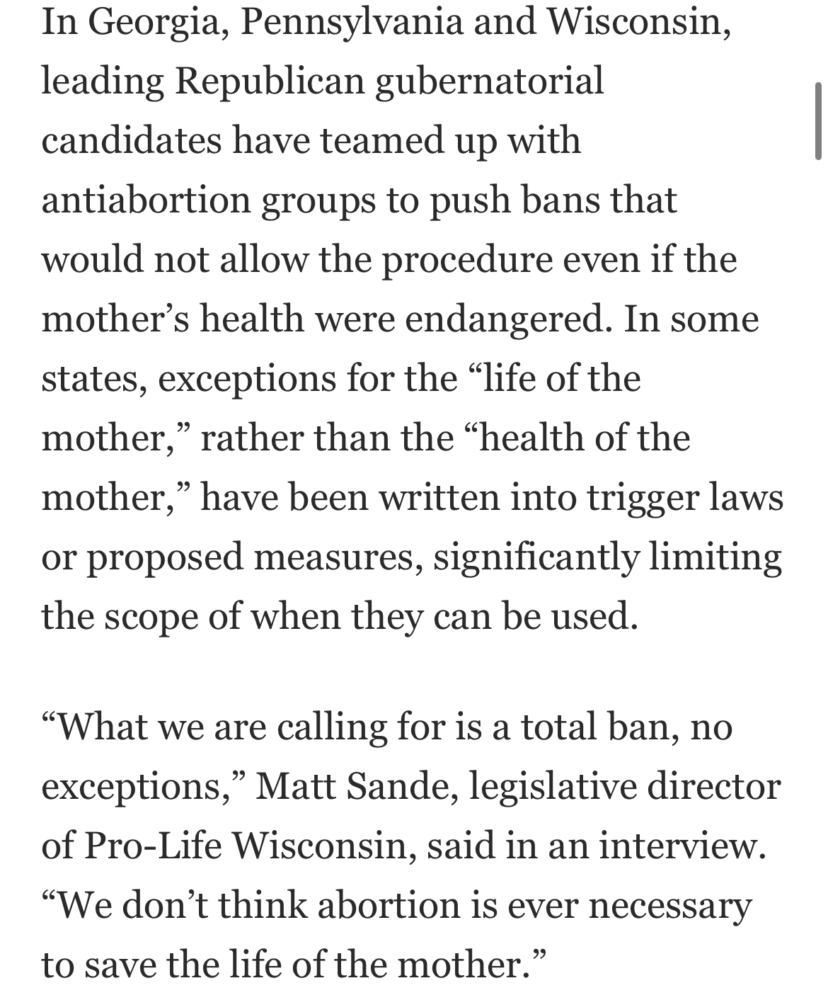 Nothing you posted contradicts what I said, I don’t give a damn what a random pro life activist group believes in, doesn’t change the fact that all states make exceptions for the life of the mother.