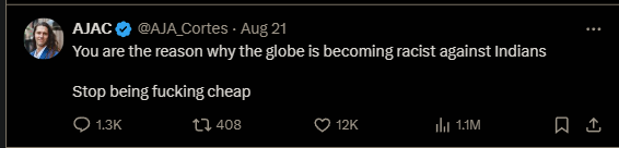 Indians are so cheap . They don’t tip even when using the company’s credit card . I don’t like my Panjeet coworkers and their smelly food even the mangers don’t like them .