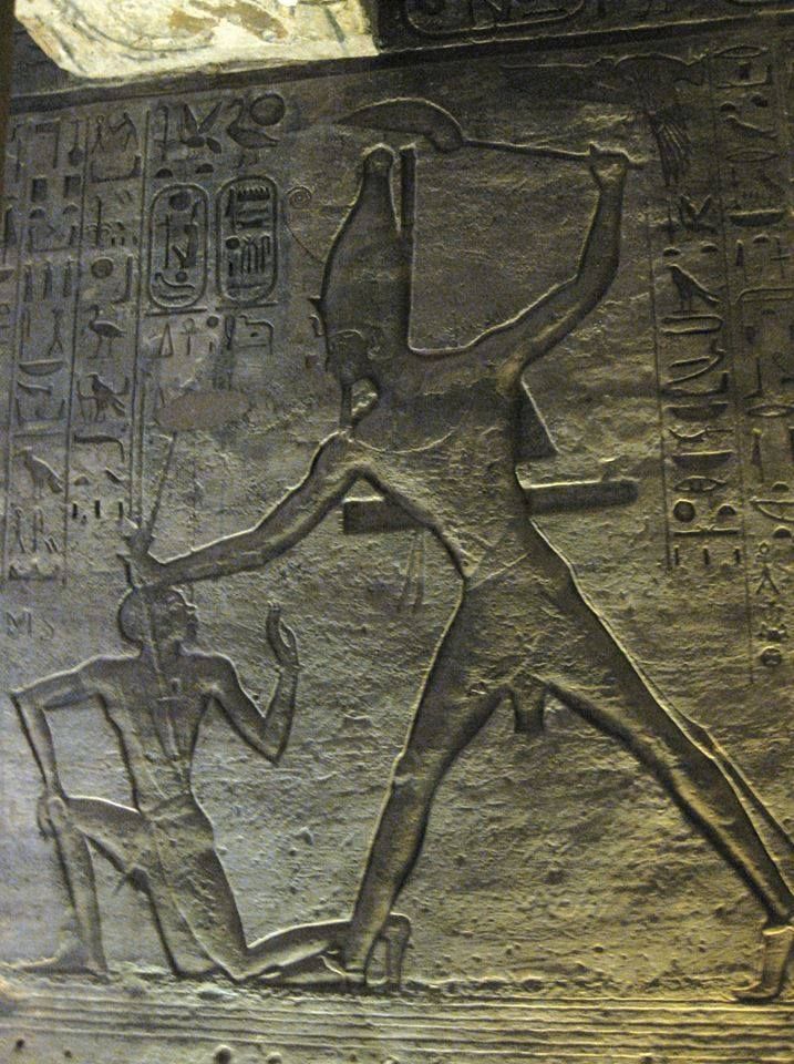 Pharaoh Ramesses II smiting a Nubian Madow: