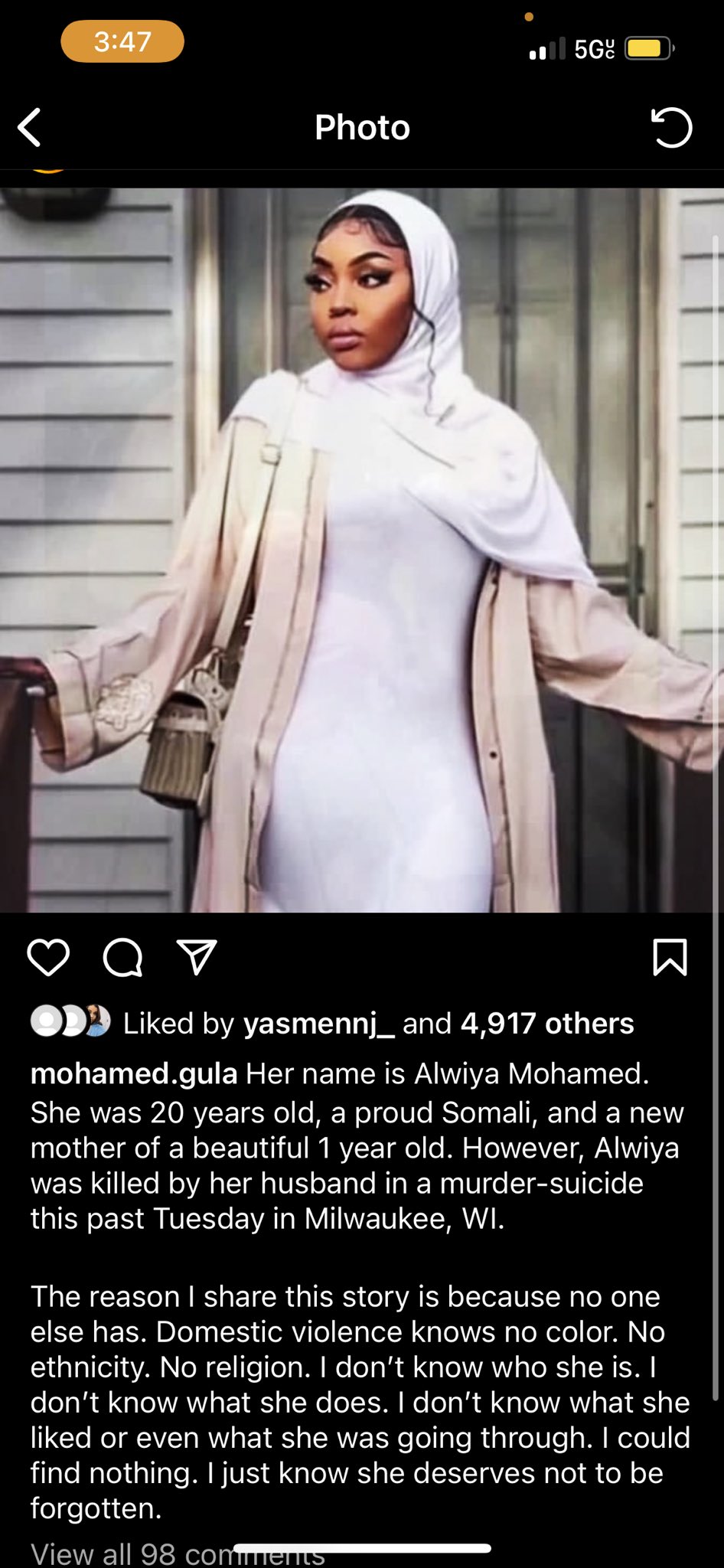 Ibrahim Hussein sounds Shia. Most likely Syrian or Iranian.She’s a 20 yo immigrant from Somalia that was married by age 18.