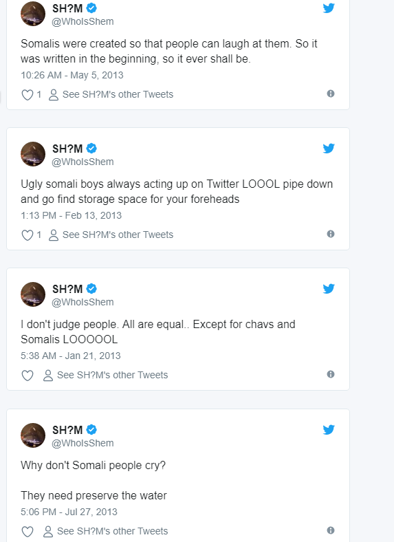 I just reported his dumbass. I will report every anti-Somali comment I see by him or anyone else fr.