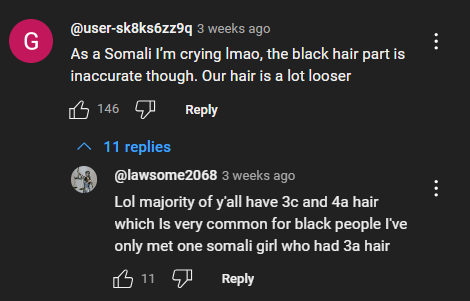Uhh the self haters in the comments justifying anti Somali sentiment on tiktok are odd. So racism against Somalis are okay because of 30 trolls online? But mathows can get 50k likes mocking our features and it’s permissible? At this point it’s cause they think their features are inferior to ours