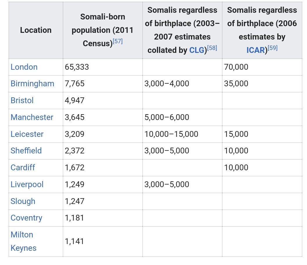 This farax told me there is half a million somalis here and i told him he is mad. I tried to look this up. But uk in general is very bad at keeping population under control. For example government say there is 67 million people in uk. Many people believe the real figure is close to 80 million