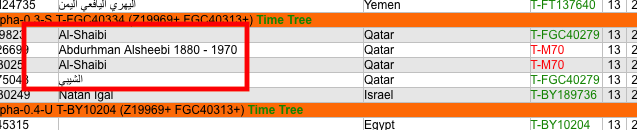 Also on Haplogroup T (former K2) Project - Y-DNA Classic Chart it seems to be more Banu shaiba with T, the one I just sent had 2 members but the other seems to have 4 people. It could be the same 2 people with 2 additional people.