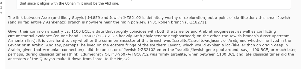 I think you talked to him, your name is Bulletproofpride on anthrogenica right? You guys are similar, both write brother, both insist on that quraysh was J and link that project as a reference and both of you said vast majority of adnanis got J and arab tribes know each other like how we know somali tribes. you said something like that to me too some time ago I remember.
