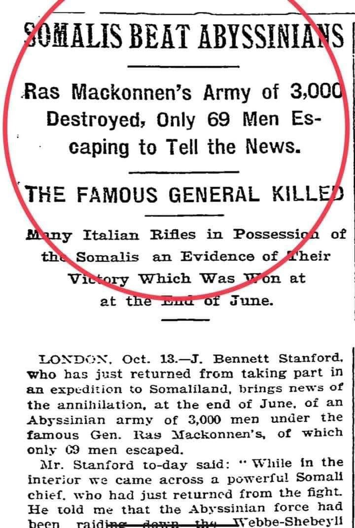 Conquered this, conquered that but the first Oromo language radio service was in Mogadishu, Somalia while Haile Selassie assassinated your leaders, musicians, poets and intellectuals left and right. They had to seek sanctuary in Somalia; is this historical amnesia? Somalis weren’t conquered by Ethiopia, even Menelik’s generals like Ras Makonnen, that were part of his push, suffered brutal defeats, despite the British imposing an arms-embargo on the locals;