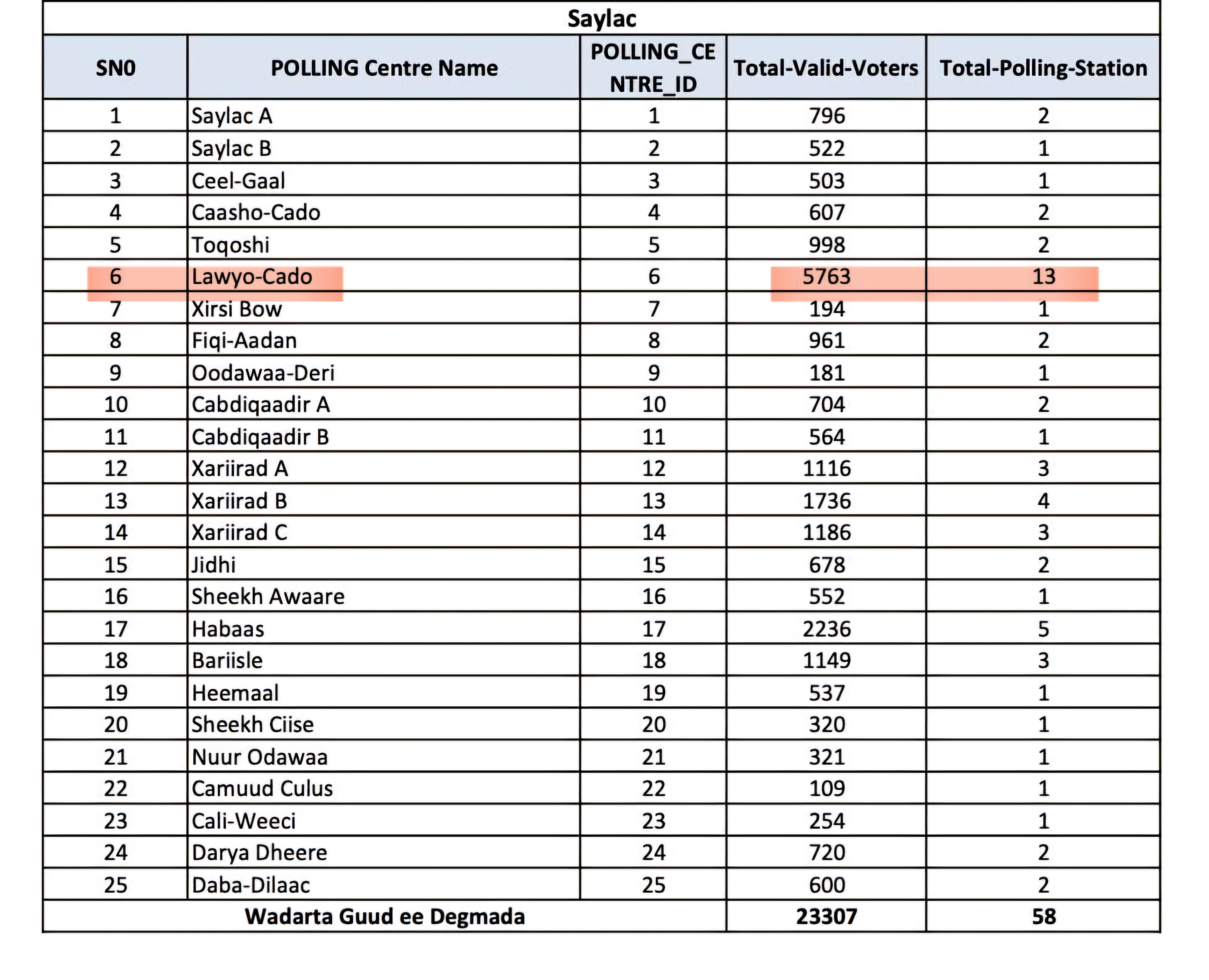 Even in the Zeila district, in the 2021 local elections they gave Lawyacado 13 polling stations and had a total voter count of 5763. The vast majority of the voters came in from Djibouti. If the borders were closed the Ciise would be down to less than 7k.