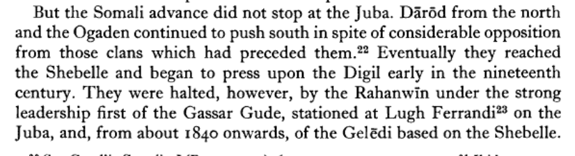 Moreover, both the Gasargude and Bardheere Rahanweyn dominated entities were already successful at dislodging the 'Galla' from territory as the above source highlights.