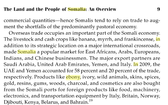 The exports in 2009, are the same products exported to Egypt 3000 years ago.