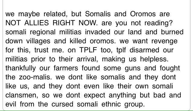 All my Ethiopians friends i grew up with either oromo or amharic got love for somalia