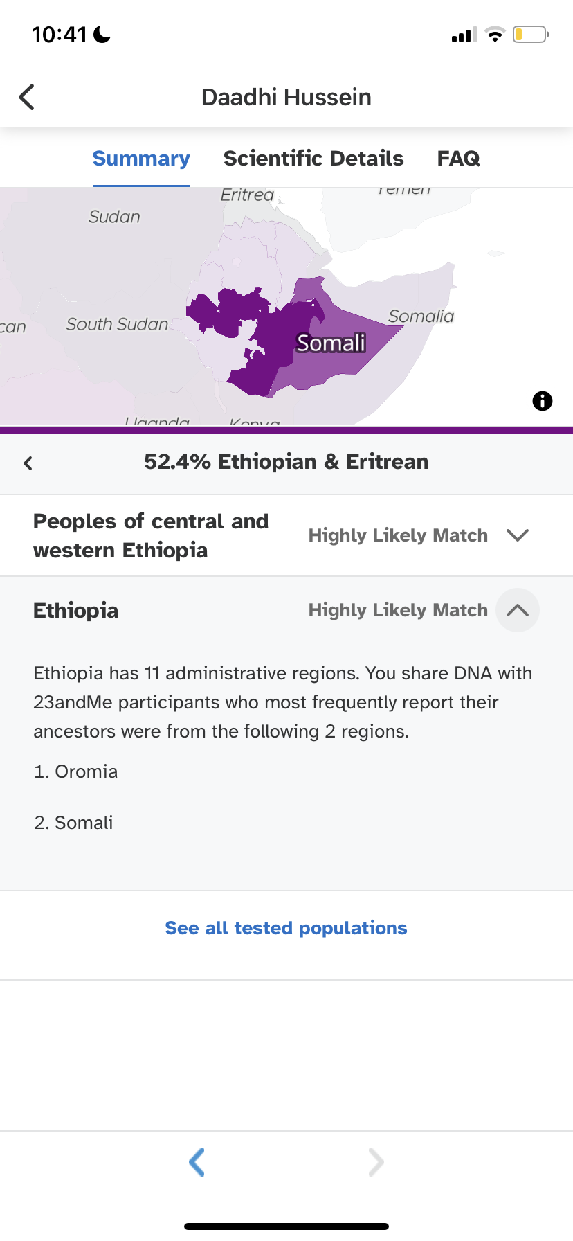 If you indeed get 50% Somali, you'll have to stop claiming Oromo. Deal?