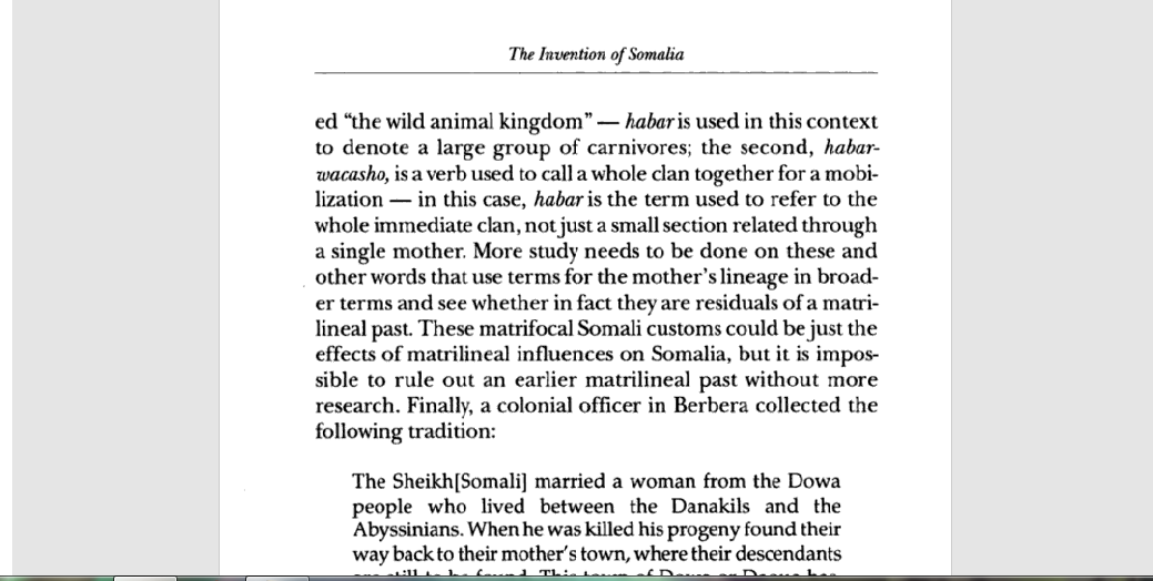 I will not divulge the secrets of the Habar Brotherhood on this public forumThis book talks about how somalia was mainly matrilineal in the past, before islam.
