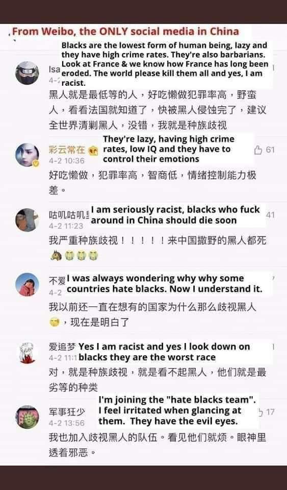 What they are doing is fucking wrong but I don’t want u to get banned thoBANNED FOR CHINKS BEING RACIST TOWARDS US SOMALIS ARE BEING ABUSED IN CHINA THE ONES STUDYING THERE SO f*ck THEM GOOKS