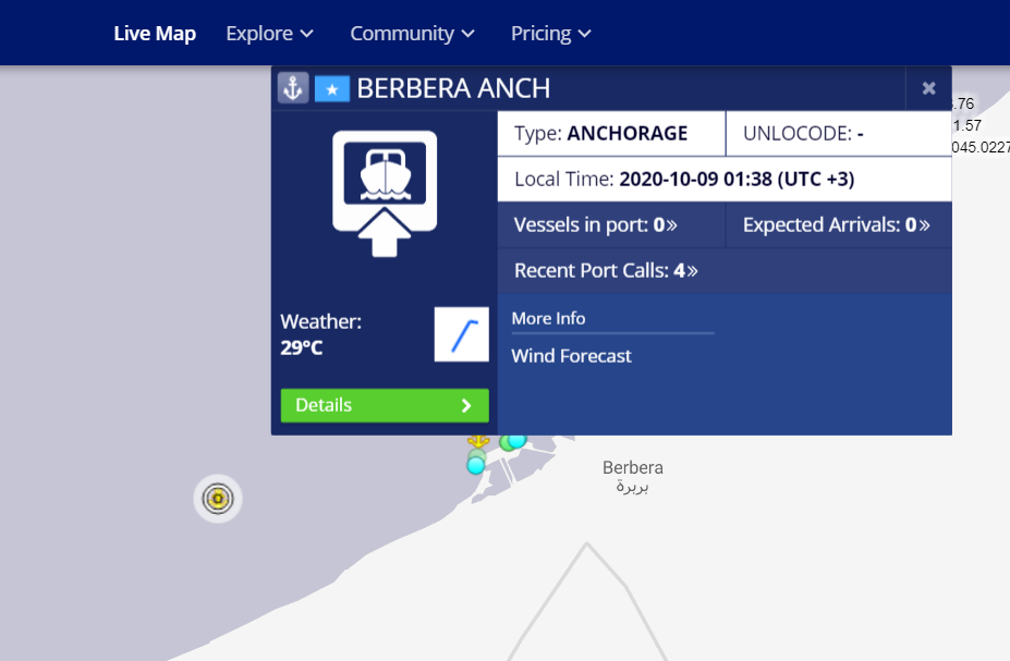 Berbera port's activity for the same period: