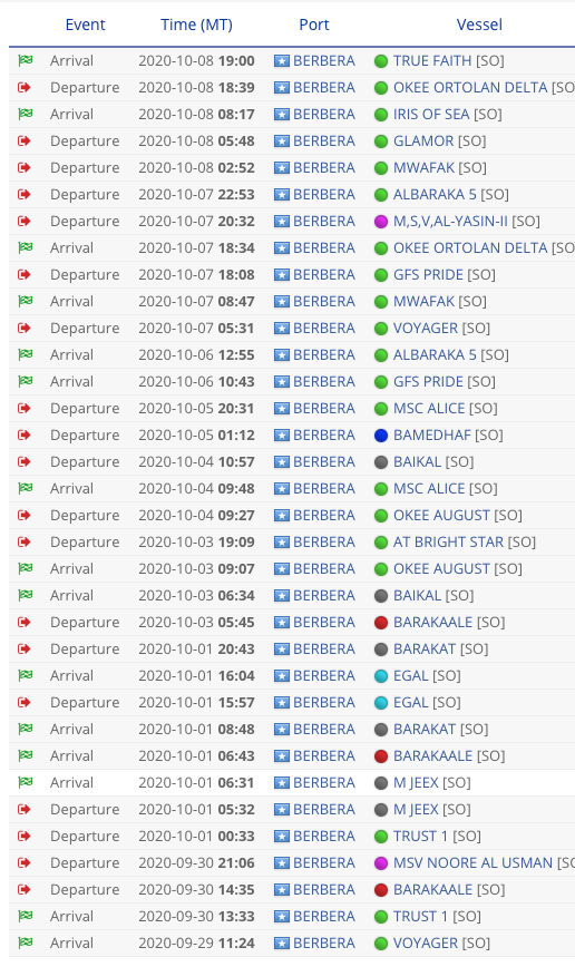 Levels of activity at Berbera are on an entirely different scale. The port is working every single week day, and unlike Bosaso, the majority of entries are cargo ships and not tugboats.