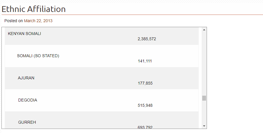 Not really. Kenya is dominated by Samaale, specifically Garre, Dagoodi, Hawiye then Ogaden. 30% were Ogaden, the census clearly showed this.Kenya is dominated by OG ? so you are Kenyan not Somali, thanks for clearing it up, this subject has been of increasing public interest since the Kenyan PM was selected by Gurgurte