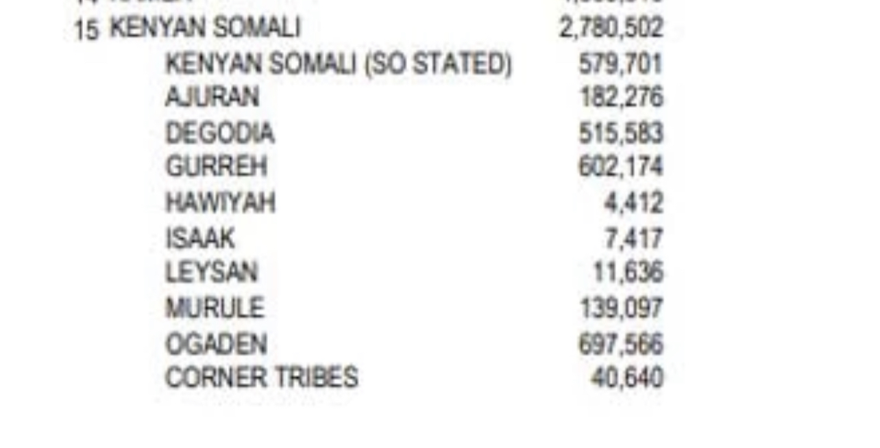 Off the top of my head back in 2013, Garre was 693k and Ogaden 621k, Hawiye (Murule+Ajuuran) 503k and 100k reporting as Somali Kenyan only.