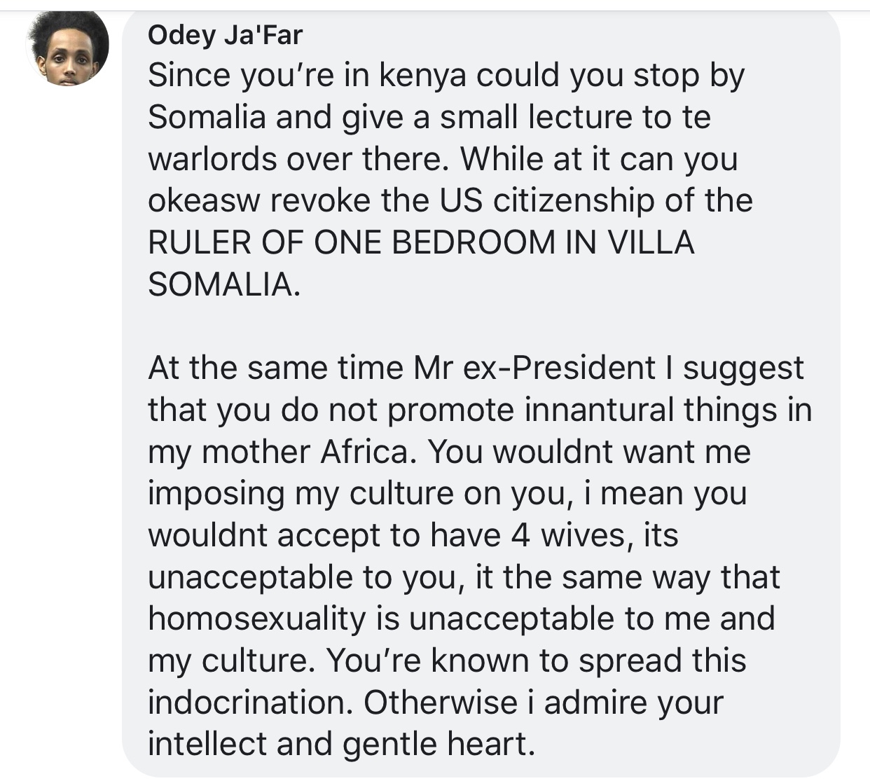 I remember how Obama gave a clear warning to Kenyans back in 2015 about the effects of cronyism and ethnic/tribal politics and how it can doom the future of young Nations. Somalis desperately need to hear that speech.