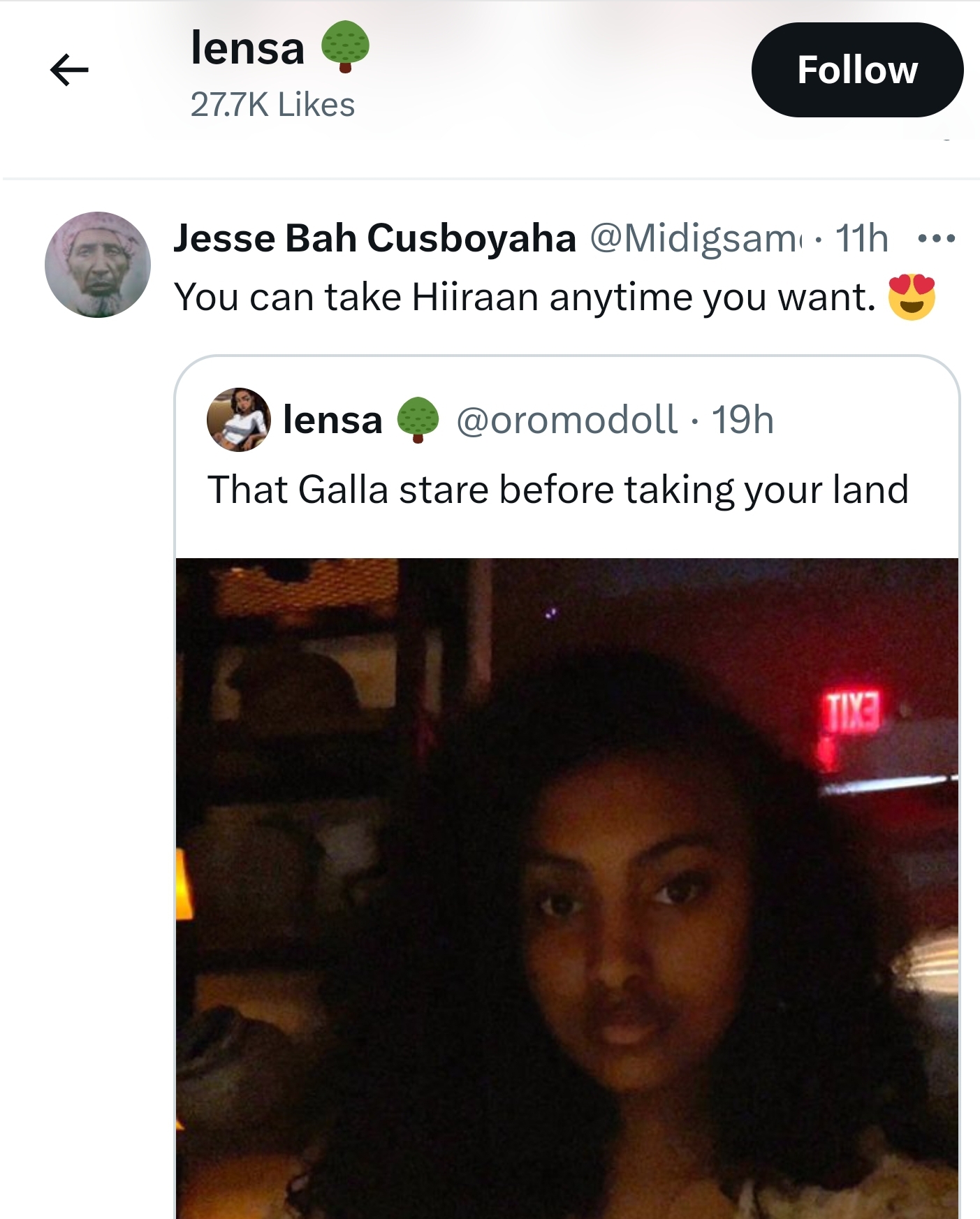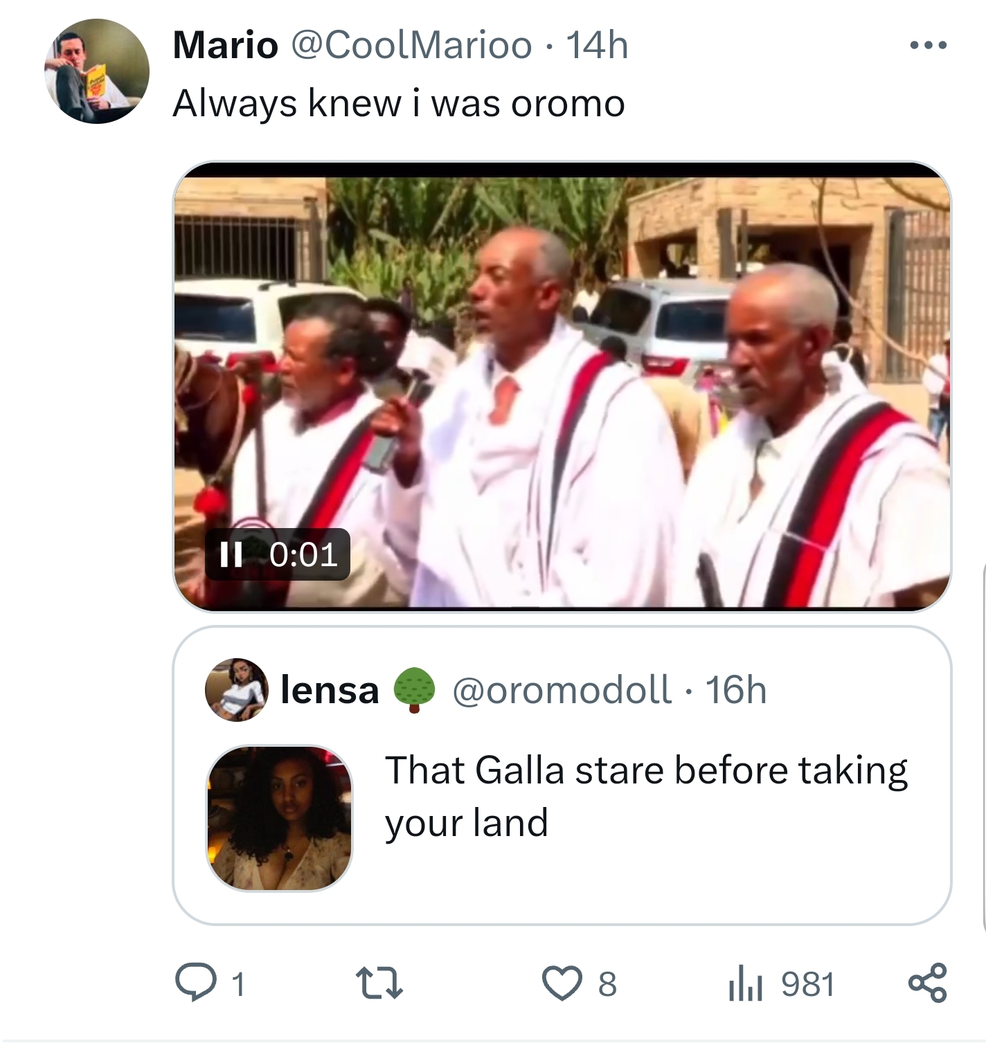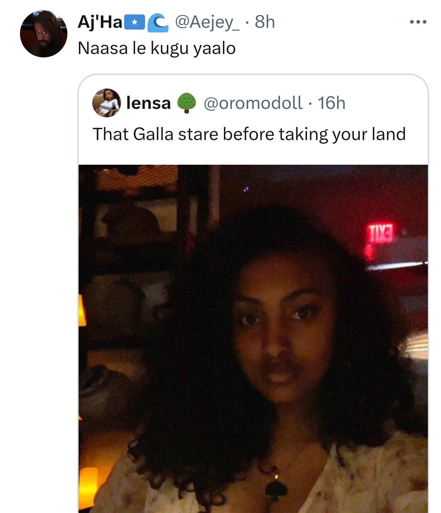 Based Galla queen. Hot women are the true conquers of nationsThe Oromo nationalist applauds and lauds her people's aggressive actions and territorial expansion into Somali and other Cushitic lands. How do the troll/Macrobian/Somali redpillers react? They prostate themselves and turn into submissive houswives.