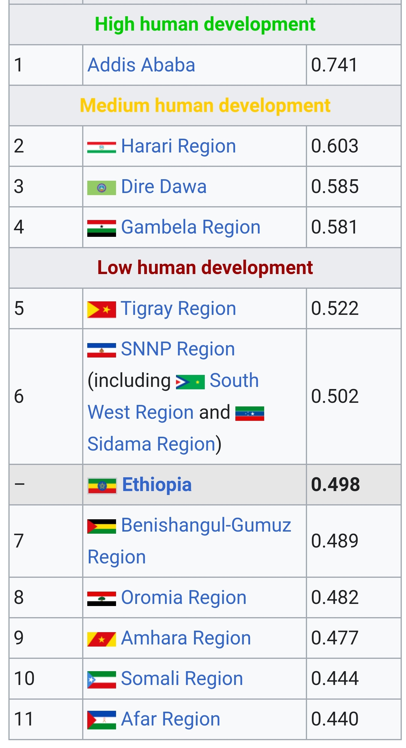There is logic in Somaliweyne and that's why that kind of ideal persists. Currently, in both Kenya and Ethiopia, the Somali regions are underfunded and ignored in comparison to the other regions. This is the human development index for Ethiopia, note how the Somali region is at the bottom, only Afar region is worse.
