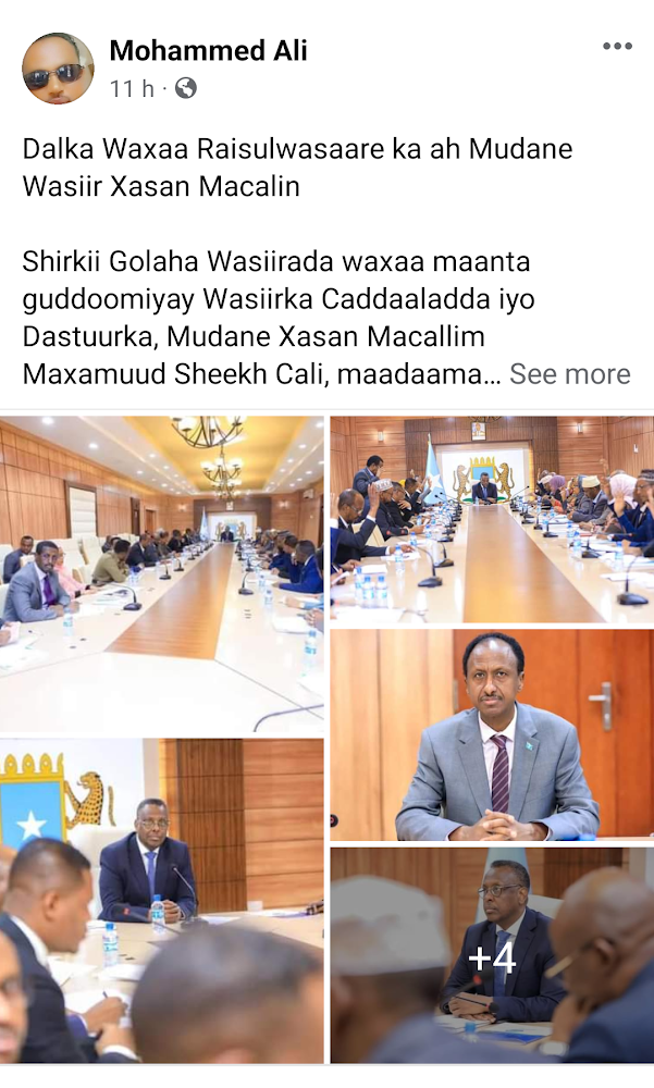 Hassan Macalin was chairing the Cabinet today in the PMs capacity. That's 3 Murusades that have been a technical part of the NSC including MP Mahadale who stepped in during Benadir Governor Yariisow's death. Up your game.