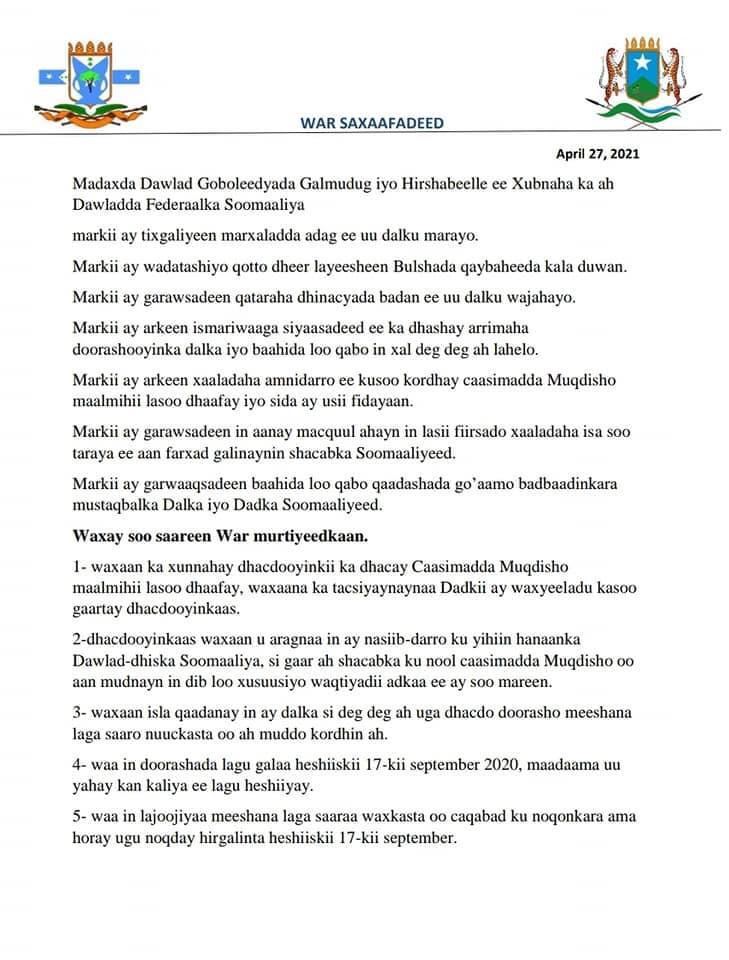 Theres no benefit in dagaal and farmaajo militia know this. Ive got several first cousins in haramcad who are non hiraab. They dont want to fight, everybody just waiting for the taliye booliis to resign:mjlol: 1 of them is off because of deputy wadajir commander.