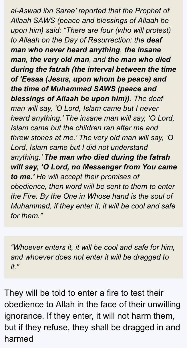 One question I have is that Islam believes that all humans have been given the message of Allah. In my opinion that was only the known world if the Middle East, Asia and the Caucases. What about Abos, Papuans, Natuve Americans and other isolated people would they go to hell for not being a Muslim since they don't know anything about Islam?