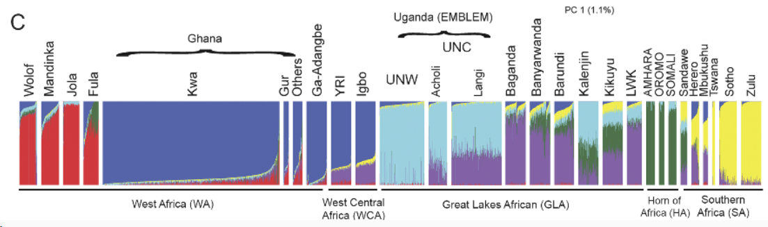 We have studies on Acholi showing Bantu signature and not West African as the source, as you can see in the admixture color scheme: