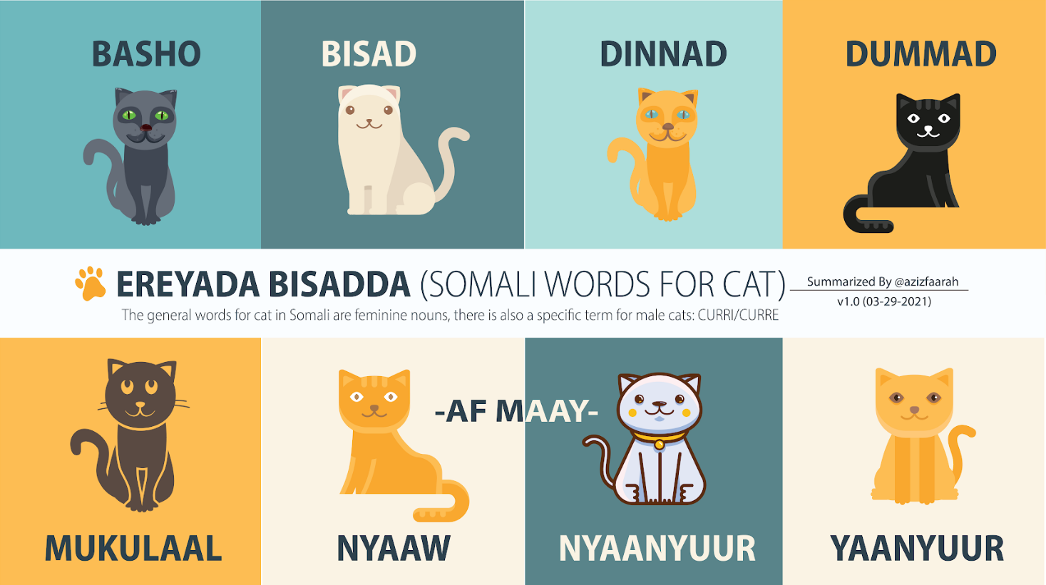Weird that there is so many words for cat in somali. Could this possibly highlight a culture that was obsessed with cats in the past?View attachment 339370