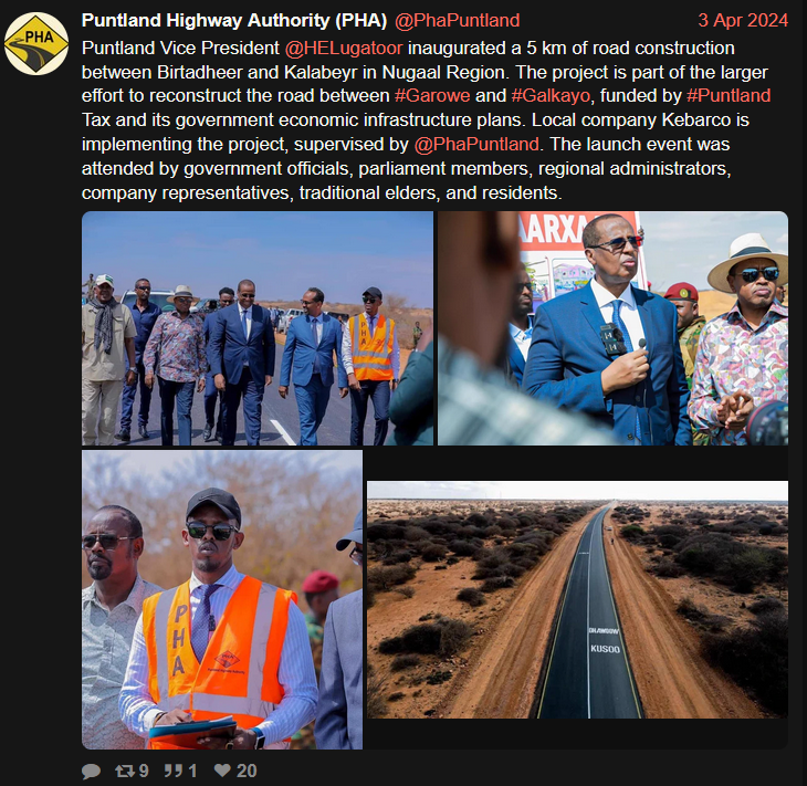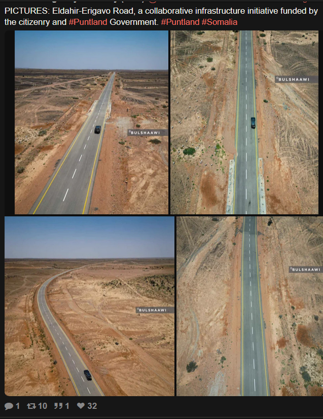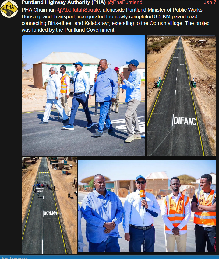 And Puntland’s Highway Authority has ongoing and completed roadworks well documented: