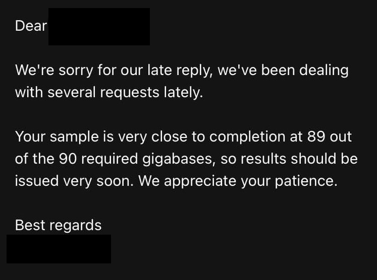 Any updates on those waiting for Dante Labs results?