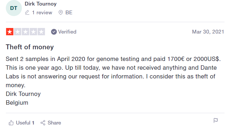 Could be an 23andMe employee smearing the competition, lol. Dante has the best price-to-quality ratio of any genomics company. 23andMe is still scamming people by using early 2010s tech. 😬