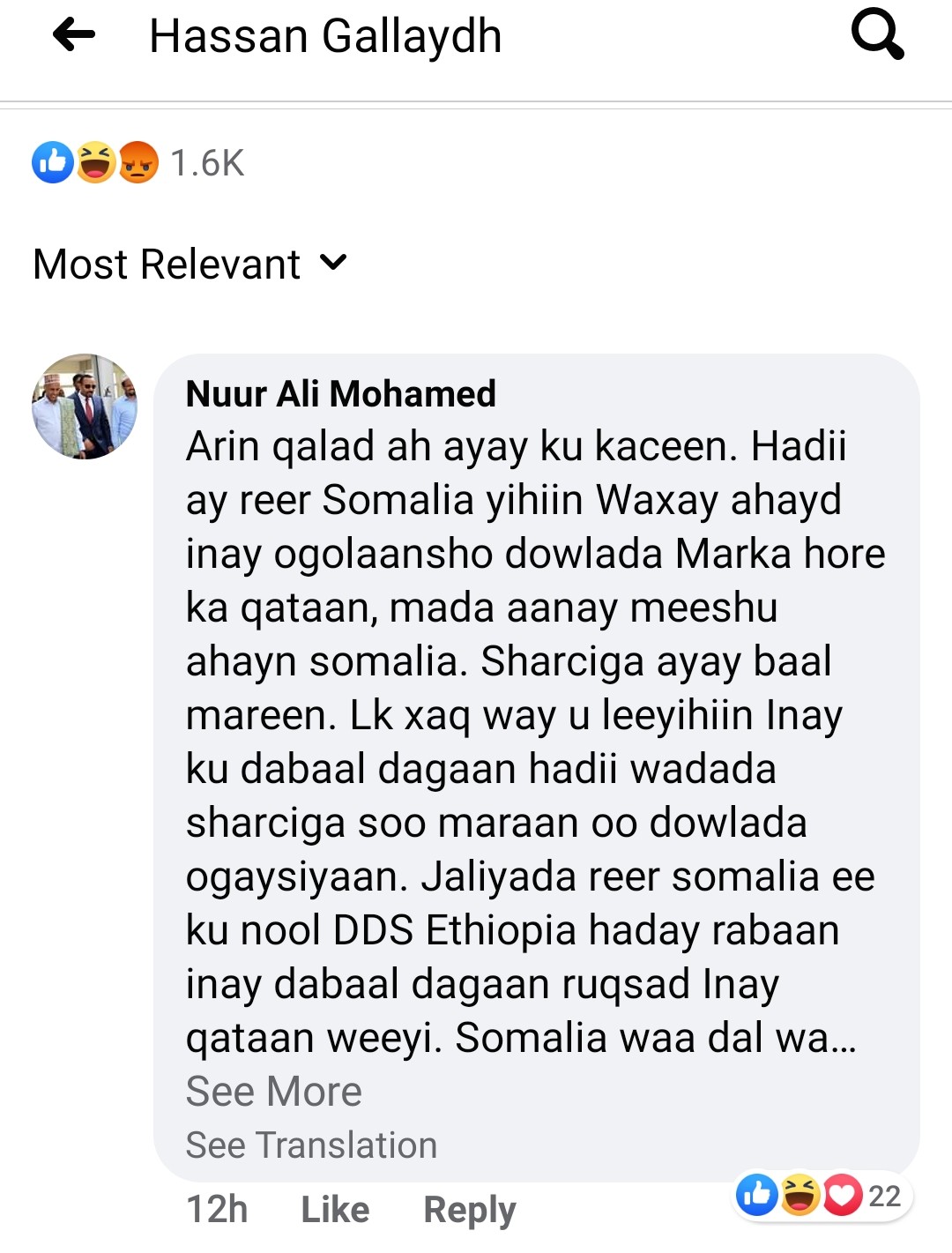 The most popular comment from Jigjiga resident says the Somalis were wrong and should've asked for permission from Ethiopian government first since this place is not Somalia:dead: